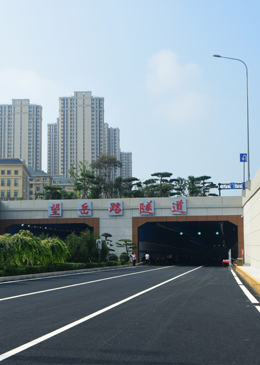 和谐路隧道工程,北起长江路,南至榴园大道,规划建设的穿山隧道为单向双洞布置。和谐路隧道为单向双洞布置,设计全长415米,其中东线隧道长度约为412米,西线隧道长度约为417米,综合管廊总长约1360米,双向四车道布置。采用双线双孔马蹄形断面,结构内净宽13.24m,为城市主干道,车道宽度3.5m,限界净高4.5m;外侧设置4.0m宽非机动车道,限界净高2.5m,设计行车速度50Km/h。