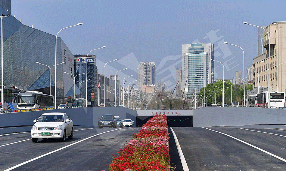 项目简介:武汉光谷广场综合体“光谷鲁磨路通道”通车。该隧道从鲁磨路紫藤花园路口处至民族大道龙安集团门前,全长680米,双向六车道,设计车速每小时60公里。隧道通车后,车辆从鲁磨路开往民族大道,经隧道下穿通过光谷转盘,仅需半分钟。鲁磨路隧道通车后,与此前开通的光谷珞喻路通道(东西方向)形成十字交叉形式,极大缓解了光谷广场交通拥堵问题。珞喻路通道隧道从珞喻路华乐大厦处至省中医院光谷院区门前,全长1270米,双向六车道,设计车速每小时60公里。隧道通车后,车辆经过光谷转盘时,可从地下直穿而过,对缓解此处交通拥堵将起关键作用。